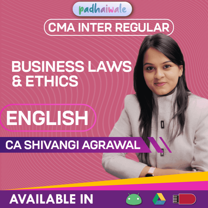 CMA Inter Business Laws and Ethics in English Regular Batch by CA Shivangi Agrawal, suitable for exams in June 2026, the course is available in GoogleDrive, & MobileApp formats, and includes hard copy books.